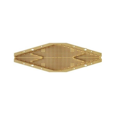 Пластиковый леток для пчел «Никот» с двумя выходами, ромбовидной формы, только корпус, размерами приблизительно 125×380 мм.
