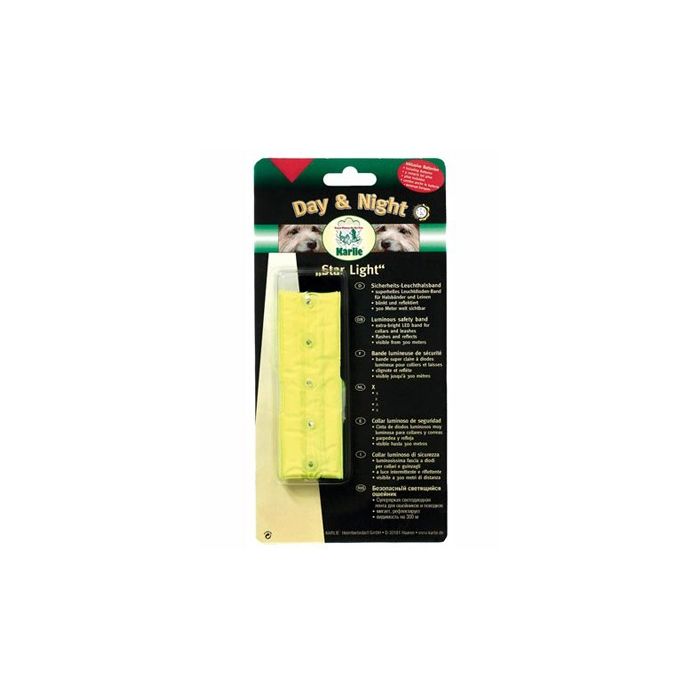 Бандаж светлый безопасности наденьте на ошейник или поводок. Мигает, отражается и виден на расстоянии до 300 метров. Источник питания : 1 батарея оборудована.