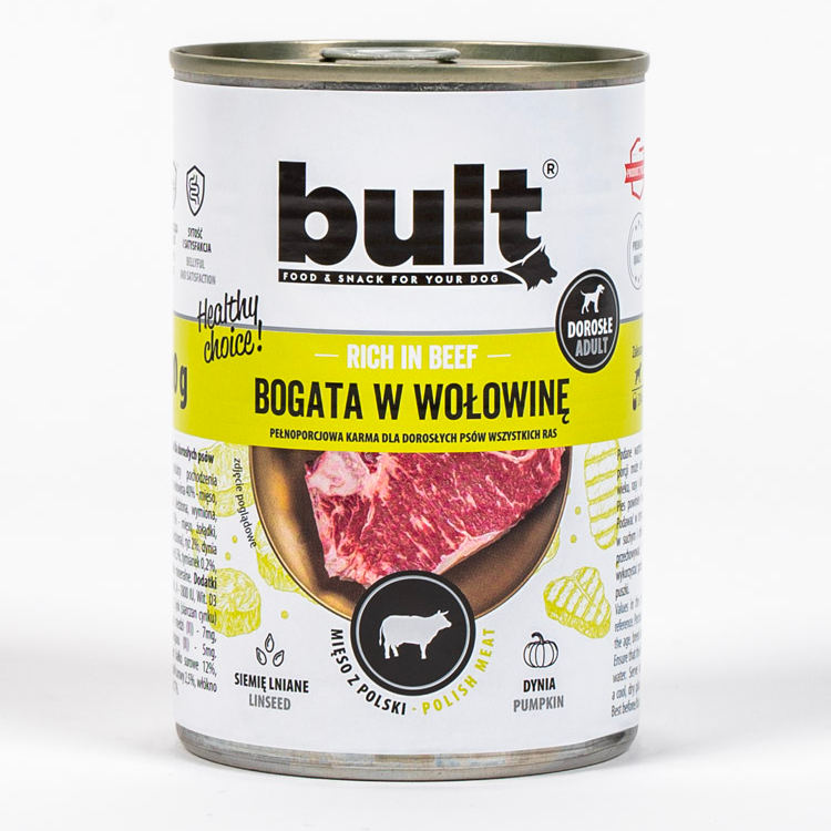 Bult консервирует лучшие ингредиенты! Ищете полноценный корм, полезный для здоровья, богатый мясом и без лишних добавок? Вы обратились по адресу! Продукция Bult – это именно то, что вам нужно! Консервы с влажным кормом – это ответ на все потребности вашей собаки. Эти консервы с высоким содержанием говядины – отличный вариант для вашего питомца. Этот корм подходит для всех питомцев, независимо от размера и породы. Благодаря приятной, мягкой текстуре, даже собаки с проблемами зубов оценят его вкус. Bult всегда идеально подходит для выбора полезных продуктов для собак. В консервах с говядиной вы не найдете лишних добавок. Этот корм богат мясом и содержит только натуральные ингредиенты. Он сохранит шерсть вашей собаки блестящей и насыщенной. Упаковка: 400 г
