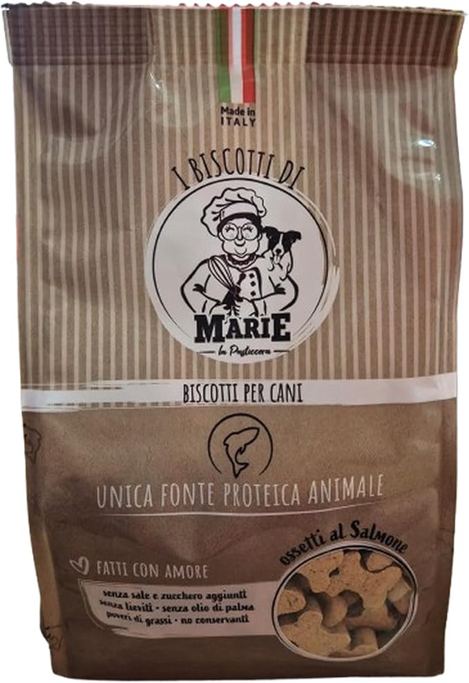 Описание продукта: Печенье Marie’s – это вкусное и питательное лакомство, специально разработанное для вашего верного четвероногого друга. Изготовленное из отборных ингредиентов, это печенье обладает непревзойденным вкусом, который порадует любую собаку. Идеально подходит в качестве поощрения или ежедневного лакомства, это полезное и вкусное лакомство для поддержания мотивации и счастья вашей собаки. Подходит для щенков и собак всех размеров. Состав: дегидрированный лосось (26%), кукурузная мука (25%), пшеничная мука (мягкая пшеница типа «0») (25%), рафинированные растительные масла (5%). Способ применения: Всегда контролируйте собаку во время еды. Подробнее