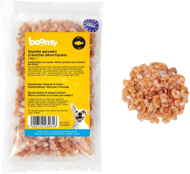 100% сушеные креветки: Эти очищенные креветки высшего качества поставляются из Европы и практически не подходят для употребления в пищу человеком, но идеально подходят для вашей собаки. Отличный тренировочный перекус: Насыщенный вкус и аромат делают эти креветки идеальным поощрением во время дрессировки, особенно для собак, любящих рыбу. Богаты питательными веществами: Креветки являются отличным источником белка и содержат полезные жиры, способствующие общему здоровью вашей собаки. Легко усваиваются: Благодаря чистому и натуральному составу эти креветки легко усваиваются и подходят для собак всех возрастов и пород. Сделано в Европе: Качество и происхождение гарантированы благодаря использованию местных сушеных креветок. › Подробнее о товаре