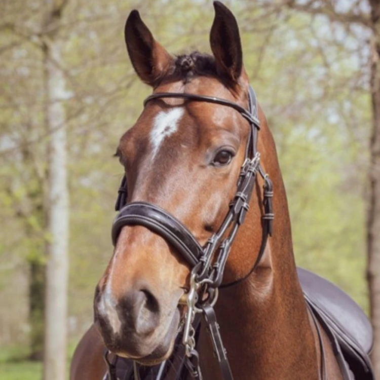 Уздечка покрыта перфорированной кожей, которая обеспечивает лучшую воздухопроницаемость и больший комфорт вашей лошади.