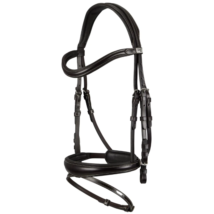 Уздечка Cassano, украшенная хромированной эмблемой PE на налобнике, демонстрирует изысканность и роскошь.