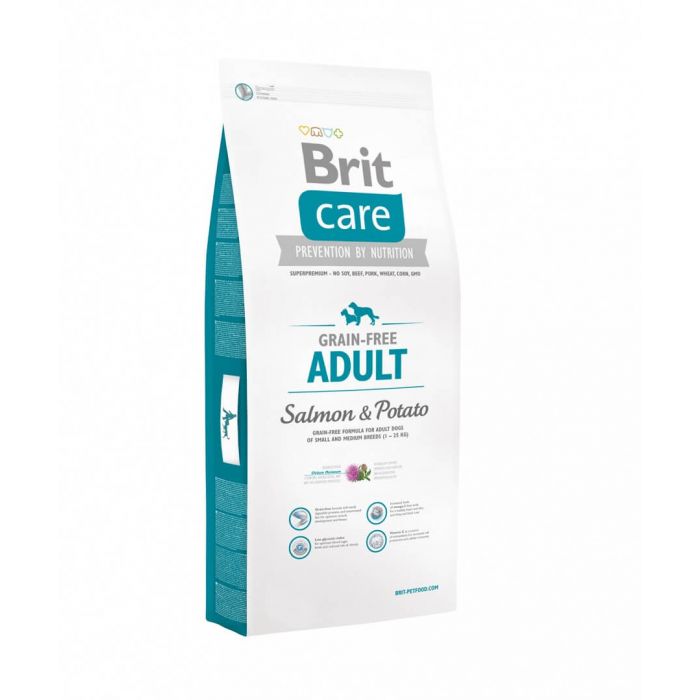 Brit Care Adult kibbles — это высококачественный корм для взрослых собак. Этот вкусный рецепт лосося и картофеля не содержит злаков, которые помогут вашему питомцу лучше переваривать пищу.