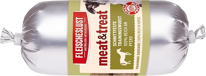 Дополнительный корм для собак – твердая колбаска для дрессировки, изготовленная из 100% мяса. Этот продукт был специально разработан как здоровая альтернатива и хорошее поощрение. Благодаря высокому содержанию мяса и низкому содержанию влаги достигается плотная консистенция, идеально подходящая для дрессировки; лакомства небольшого размера легко делятся. Все виды мяса и лакомств хранятся в пластиковых пакетах при комнатной температуре (срок хранения – 12 месяцев). Аналитические компоненты: Буйвол, Птица, Конина, Белок 14,9%, 14,9%, 14,9%, 14,9%, 7,4%, 7,2%, 6,0%, 1,2%, 1,7%, 1,1%, 1,0% …