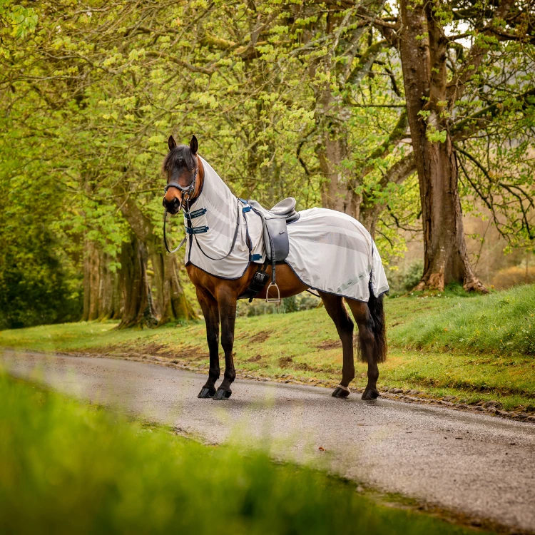 Рубашка с защитой от мух Flyrider идеально подходит для защиты вашей лошади от мух и других насекомых во время тренировок, рыси и т. д.