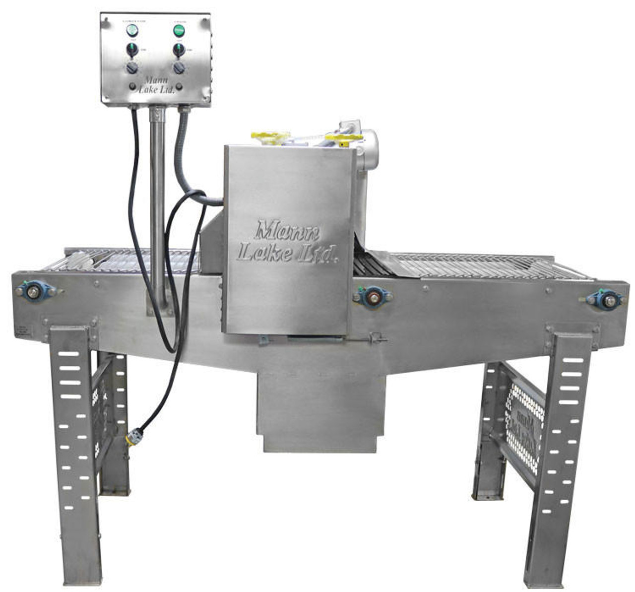 Конструкция из 100% нержавеющей стали Регулируемая глубина реза во время работы Мобильная панель управления Регулируемая скорость Распечатывает до 12 рамок в минуту Распечатывает рамки любого размера без регулировки Ящик для слива укупорки с выпускным отверстием 230 Вольт Двигатель привода 1 л.с., двигатель резки ½ л.с. Размеры 36 x 69 x 66 (91,44 см x 175,26 см x 167,64 см). Вес 285 фунтов.