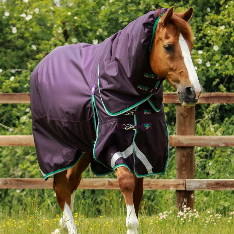 Защитите свою лошадь с помощью уличного коврика Buster 200 г и съемного плотно прилегающего чехла для шеи.