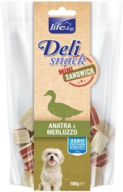 МИНИ-СЭНДВИЧ DELISNACK С УТКОЙ И ТРЕСКОЙ 100 ГР. Мини-сэндвич Delisnack с уткой и треской – это снек с высоким содержанием рыбы и мяса, без добавления сахара, искусственных красителей и ароматизаторов. Благодаря своему составу он очень полезен и приятен на вкус. Мини-сэндвич Delisnack идеально подходит в качестве перекуса для маленьких собак, его можно давать во время прогулок, дрессировки или в качестве лакомства. Возраст: подходит для всех возрастов. Состав: утка. Подходит для: поддержания здоровья кишечника.