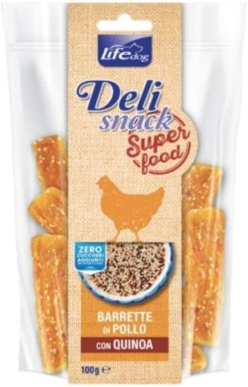 ��Delisnack Superfood Chicken Bars with Quinoa — это лакомство для собак с большим количеством мяса, обогащенное киноа, источником незаменимых аминокислот, которое обеспечивает собаку многими качественными микроэлементами › Посмотреть более подробную информацию о товаре