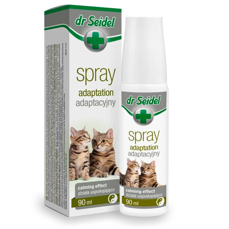 Спрей «Адаптация» для кошек – современный многокомпонентный препарат из серии средств для коррекции поведения. Он оказывает успокаивающее и смягчающее действие на кошек. Он содержит композицию натуральных веществ, влияющих на поведение животных подобно кошачьим феромонам. Этот состав соответствует смеси, раскрытой в европейском патенте EP0724832, известном с 1996 года. Использование спрея во время поведенческой терапии значительно способствует процессу, создавая у кошки чувство безопасности.