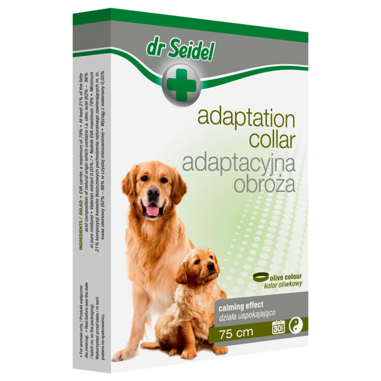 Адаптивный ошейник для собак оказывает успокаивающее и смягчающее действие. Адаптивный ошейник доктора Зайделя — это современный многокомпонентный продукт из серии средств для коррекции поведения. Он оказывает успокаивающее и смягчающее действие на собак. Он содержит композицию натуральных веществ, которые влияют на поведение животных подобно феромонам собак. Этот состав соответствует смеси, известной с 1996 года и описанной в европейском патенте EP0724832. Использование ошейника во время поведенческой терапии значительно способствует этому процессу. Он даёт собаке чувство безопасности, способствует обучению и быстрой адаптации к новым задачам.
