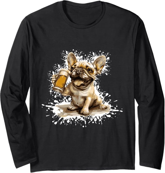 Футболка с длинным рукавом «Забавные французские бульдоги с пивом»