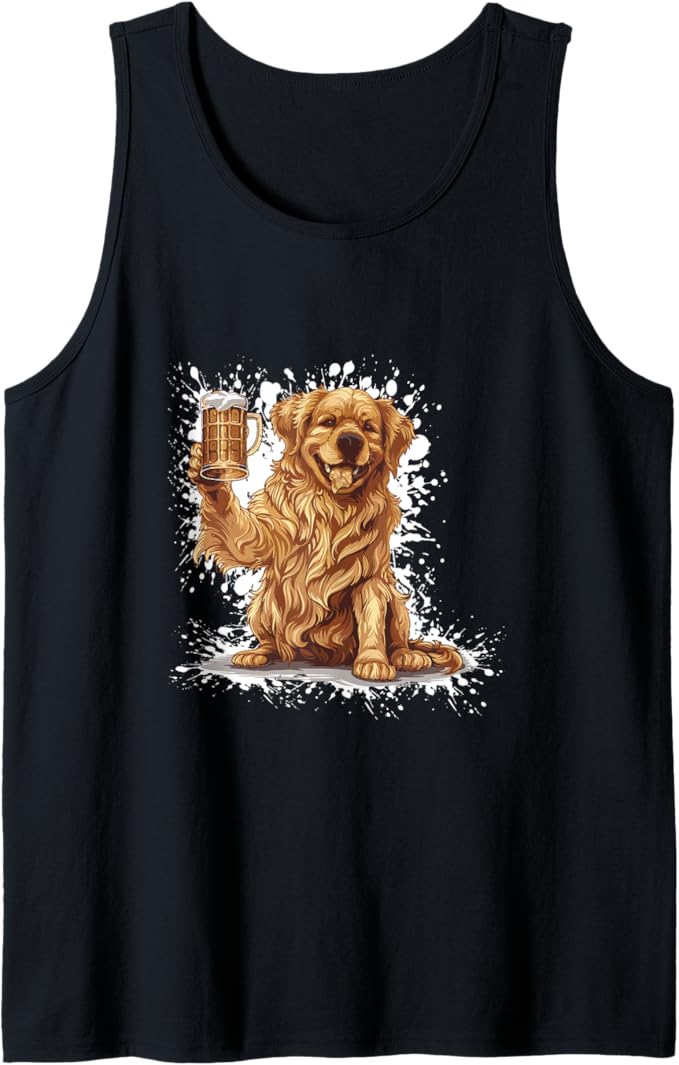 Смешные собаки породы золотистый ретривер в майке с пивом
