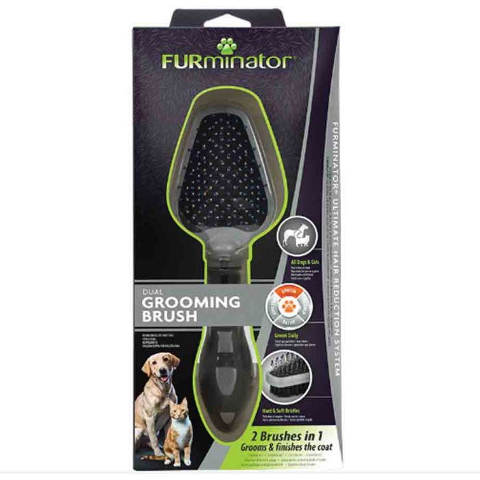 Двойная щетка Furminator для кошек и собак — это щетка 2-в-1 с жесткой и мягкой сторонами для ухода и полировки шерсти.