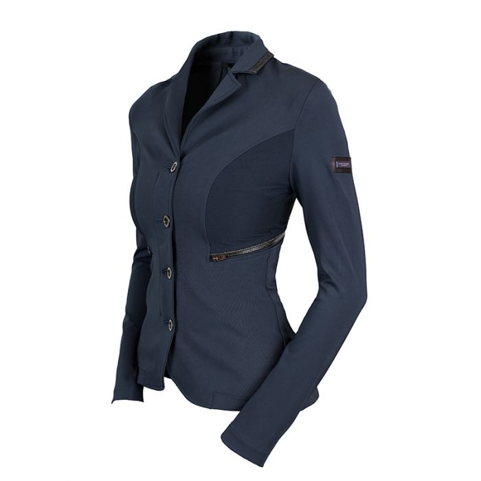 Куртка для соревнований Equestrian Stockholm Bordeaux имеет шикарный дизайн и чрезвычайно удобна в ношении. Ткань очень эластична и не имеет внутренней подкладки, что обеспечивает оптимальную свободу движений. Куртка имеет приятную посадку и роскошный вид. Молнии по бокам придают куртке неповторимый вид. Ниже рукавов и на спине куртка имеет сетчатую ткань, которая делает ее очень дышащей и идеально подходит для жарких дней. Под пуговицами имеется потайная молния.