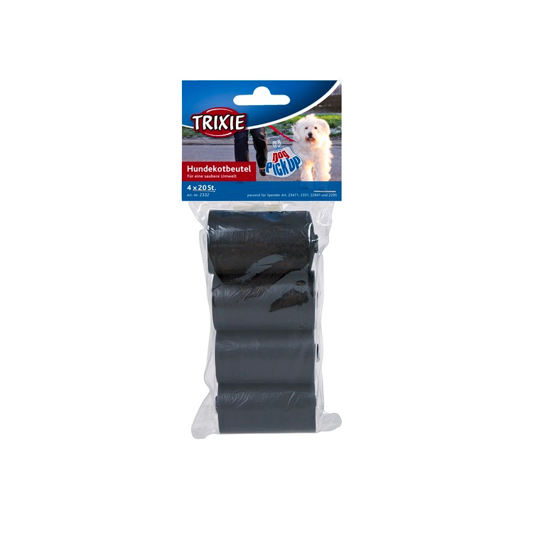 Пластиковые пакеты для экскрементов. В упаковке 4 рулона по 20 пакетов в каждом.