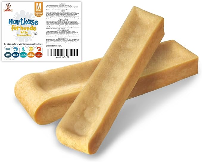 Наши натуральные жевательные косточки производятся в Европе. Наши сырные палочки для собак – богатый источник кальция и белка. Мы придаём большое значение тому, чтобы ваши собаки получали высококачественные сырные лакомства, изготовленные из настоящего коровьего молока, полученного от европейских коров и изготовленные вручную в наилучших условиях. Наши сырные палочки не содержат зерна и глютена и изготовлены из 100% органических и экологичных ингредиентов. Основной ингредиент – сверхтвёрдый сыр, изготовленный из натурального коровьего молока. Наши сырные жевательные палочки для собак – это восхитительный оригинальный продукт для каждой собаки, обеспечивающий восхитительное и продолжительное удовольствие от жевания. Это полезный, низкокалорийный корм с уникальным вкусом. Наши сырные палочки не содержат искусственных консервантов, красителей, ароматизаторов и добавленного сахара. Они стимулируют естественные инстинкты вашей собаки и способствуют правильному жевательному поведению. В состав входят исключительно натуральные, экологически чистые вещества, такие как коровье молоко, лимонный сок и соль. В каждой упаковке находятся два сырных снека среднего размера весом 50–80 г каждый.