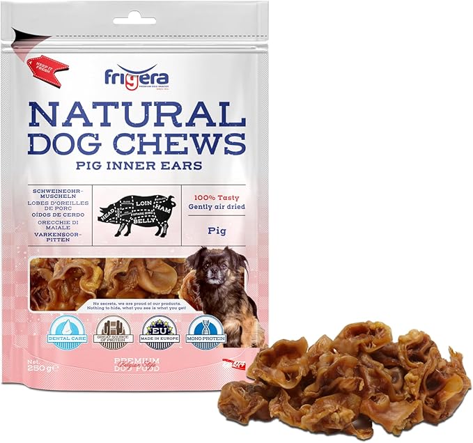 Описание Ищете невероятно вкусное, прочное, полностью натуральное и бюджетное жевательное лакомство для вашего любимого пушистого члена семьи? Мы вам поможем! Взгляните на эту вариацию абсолютной классики среди натуральных сушеных лакомств для собак: свиные внутренние уши friGERA! Наши свиные внутренние уши изготовлены из отборного свежего сырья, которое затем высушивается. Кроме того, они являются отличным источником белка, необходимого для здоровья мышц. Поскольку свиные внутренние уши в основном состоят из хрящей и кожи с небольшим количеством мяса, они являются отличным способом поддержания здоровья зубов вашего любимого питомца. У них также есть небольшое преимущество перед другими натуральными продуктами от других видов животных с такими же характеристиками зубов, поскольку их кожа, как правило, немного мягче, что полезно для ваших здоровых десен. Свиные внутренние уши действительно содержат больше жира, чем аналогичные сухие натуральные лакомства. Это часто считается недостатком, но это определённо так, если их не перекармливать. На самом деле, свиные внутренние уши имеют несколько преимуществ, включая следующее: жир обеспечивает вкус, и этот продукт очень популярен у собак в сезон. Кроме того, это хороший источник энергии для собак, у которых метаболизм и физические нагрузки отличаются от человеческих, а значит, им требуется гораздо больше энергии, и они её сжигают! Если целое ухо слишком много для вашей маленькой собаки или вам нужно быстро и вкусно перекусить для более крупной собаки, эти лакомства на один укус определённо заслуживают внимания! Состав: 100% свинина.