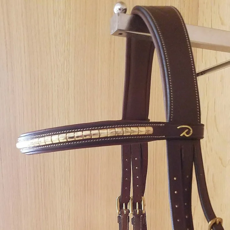 Стеганый кожаный налобник, украшенный латунным клинчером, идеально подходит для придания вашей уздечке еще большей харизмы.