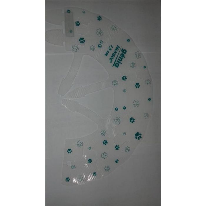 Carcan Funcol от Genia — это воротник смирительной рубашки из бесцветного прозрачного полипропилена с цветным рисунком в виде ног.