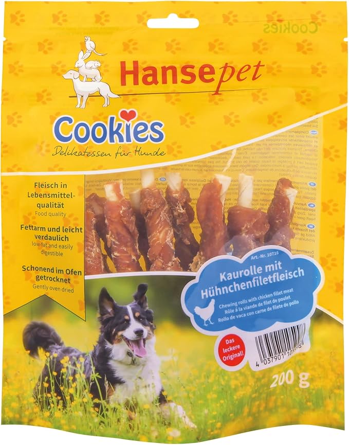 Описание: Hansepet Cookies Delikatess Chicken Fillet on a Roll – это полезное лакомство в дополнение к основным блюдам, идеально подходящее для всех взрослых собак. Этот вариант также входит в серию бисквитов и состоит всего из трёх ингредиентов: куриного филе, говяжьей кожи и небольшого количества белка, связывающего два основных ингредиента. Они бережно высушены для сохранения всех натуральных питательных веществ и вкуса. Таким образом, сочетание двух сырых ингредиентов создаёт полезное лакомство для собак, идеально подходящее для игр в апорт или для спокойного жевания: это не только полезно для зубов, но и стимулирует выработку гормонов счастья. Кроме того, ваш питомец получает пользу от ценных питательных веществ, содержащихся в этих двух ингредиентах, таких как белок, и, что не менее важно, от хорошей усвояемости. Информация о продукте: Вкусное лакомство для взрослых собак всех пород, высококачественное, нежное куриное филе в рулете из говяжьей кожи с приятным ароматом для питания с низким содержанием жира. Инструкция по применению: Взрослые. Инструкция по применению: Хранить в прохладном, сухом месте. Подробнее