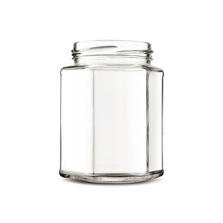 Стеклянная шестигранная банка (190 мл — 250 г), с крышкой twist-off диаметром 58 мм. Размеры 70x70x90 мм.