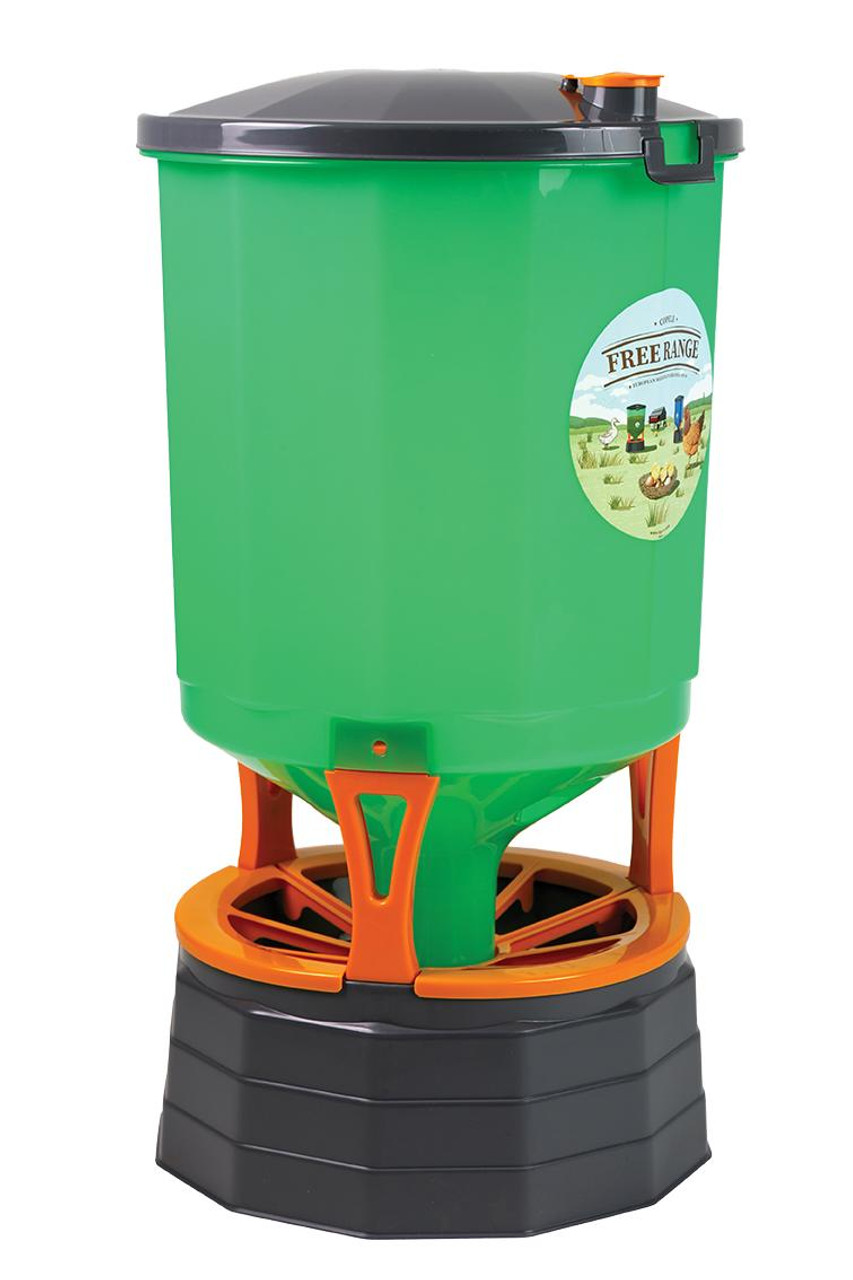 его новая кормушка большой емкости делает кормление вашего стада легким! Емкость 65 фунтов означает, что вы можете наполнить ее целым мешком корма, и еще останется место! Ее полупрозрачный корпус даст вам знать, когда у вас заканчивается корм. Решетка экономии корма не позволит вашим птицам тратить корм.