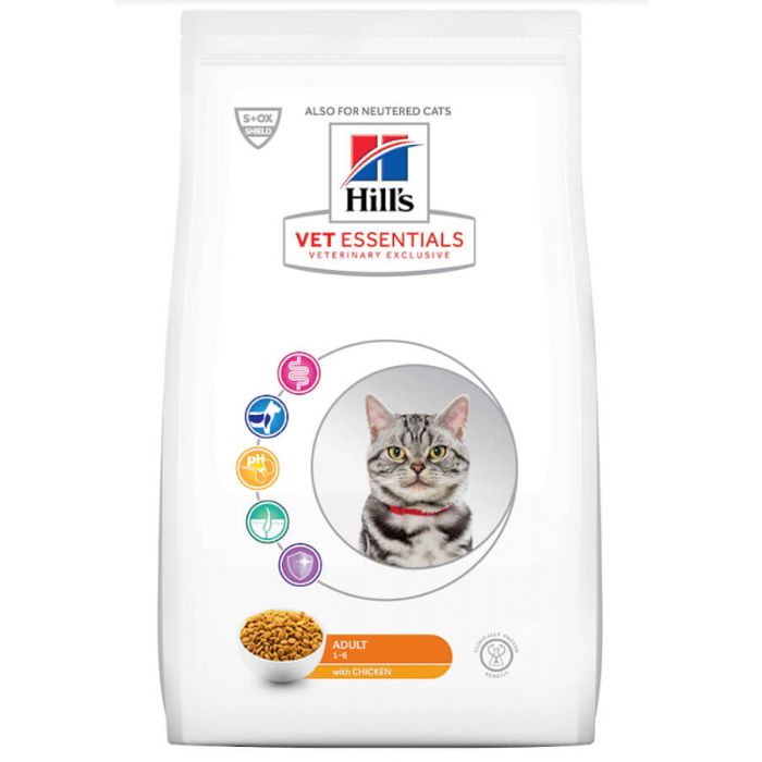 Hill’s VetEssentials Feline Adult Chicken — это полноценный и сбалансированный корм для взрослых кошек, содержащий специальные волокна, способствующие хорошему пищеварению и предотвращающие образование комков шерсти.