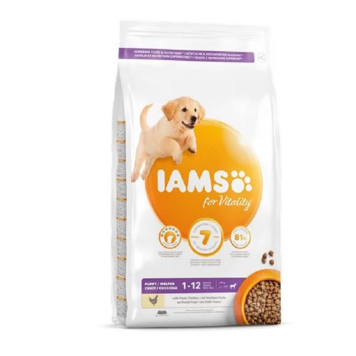 Сухой корм Iams Vitality Large Breed Puppy — это полноценный и сбалансированный рецепт со свежей курицей для щенков крупных пород в возрасте 1–12 месяцев, обеспечивающий здоровый рост и крепкие кости.