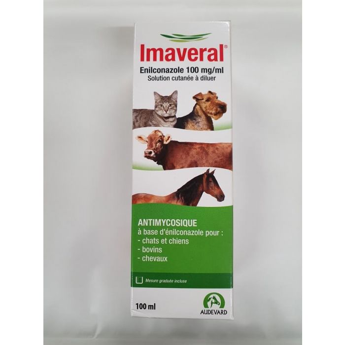Имаверал представляет собой концентрированный раствор для применения у кошек, собак, крупного рогатого скота и лошадей для лечения дерматофитии (стригущий лишай).
