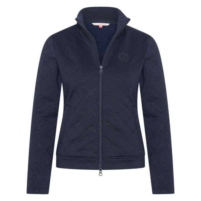 Куртка на двусторонней молнии из зимней коллекции Imperial Riding. На ткани вырезаны лазером точки в причудливом клетчатом узоре, а за отверстиями видна ткань светлого цвета. Кроме того, у куртки имеется воротник-стойка с тонкими стразами.