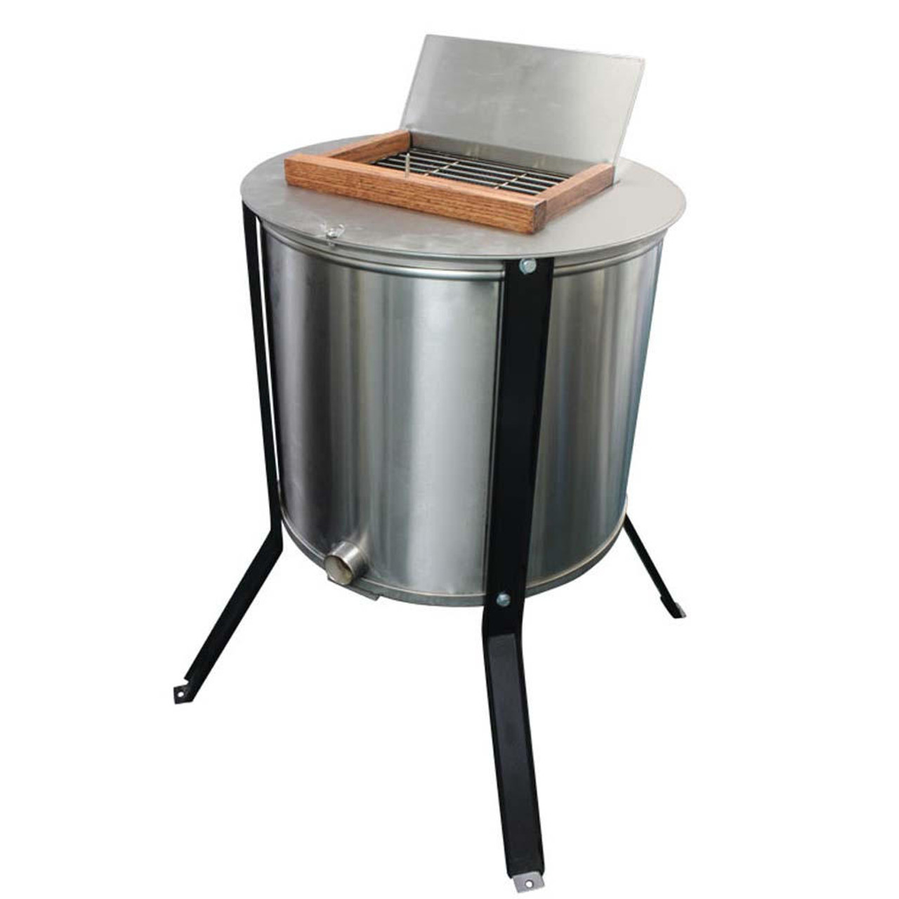 С легкостью отделите медовые и восковые крышки! Эта машина отлично подходит для тех, у кого 100 ульев или меньше. Резервуар из нержавеющей стали калибра 20 (0,953 мм) имеет диаметр 20 дюймов (50,80 см) и высоту 32 дюйма (81,28 см). Дно штампованное и коническое для удобства бокового слива. Съемная корзина для крышек вырезана лазером и изготовлена из перфорированной нержавеющей стали калибра 18. 110 вольт.