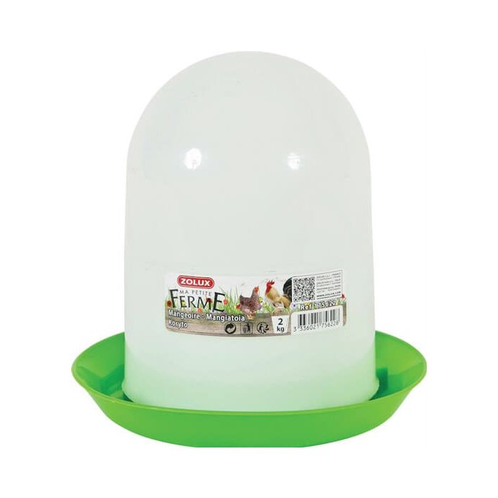 Кормушка Zolux 2 кг эстетична, практична и экономична! Идеально подходит для обустройства курятника в саду. Резервуар полупрозрачный, чтобы можно было контролировать уровень остатков пищи.
