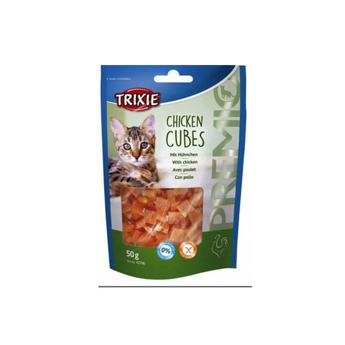 Premio Chicken Cubes от Trixie — лакомство для кошек в виде кубиков птицы. Он может служить вам вспомогательным средством для приема лекарств, чистой наградой или дополнением к интерактивным играм Cat Activity.