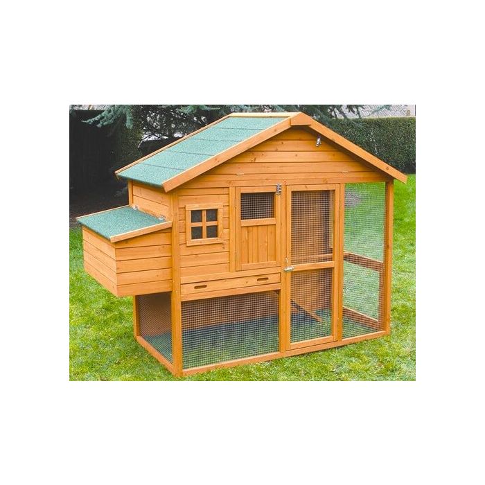 В курятнике «Дакота» есть все необходимое для комфортного содержания ваших кур. Это вольерный курятник с внешним ящиком для несушек из мореного дерева на 4-6 кур.