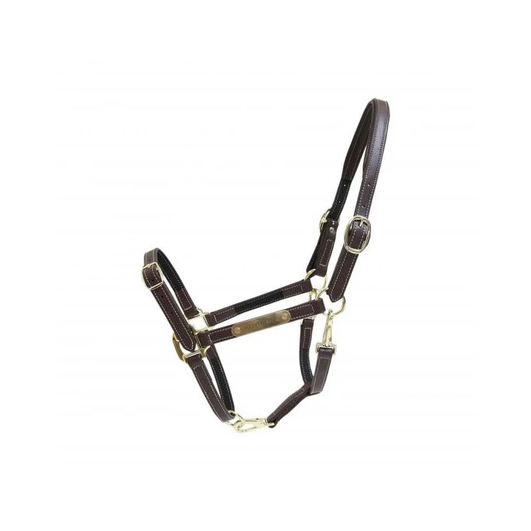 Как и все остальное в ассортименте, этот недоуздок изготовлен из искусственной кожи, поэтому он очень эластичен и чрезвычайно практичен в уходе. Он имеет набивку на подголовнике и небольшую табличку, на которой можно выгравировать.