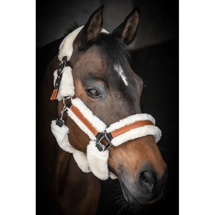 Остальная часть недоуздка изготовлена ​​из нейлона, также покрыта синтетической овчиной.