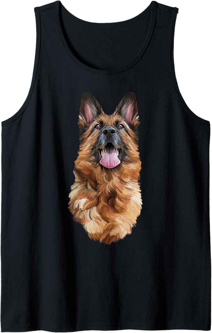 Коричневая немецкая овчарка смотрит вверх на майку