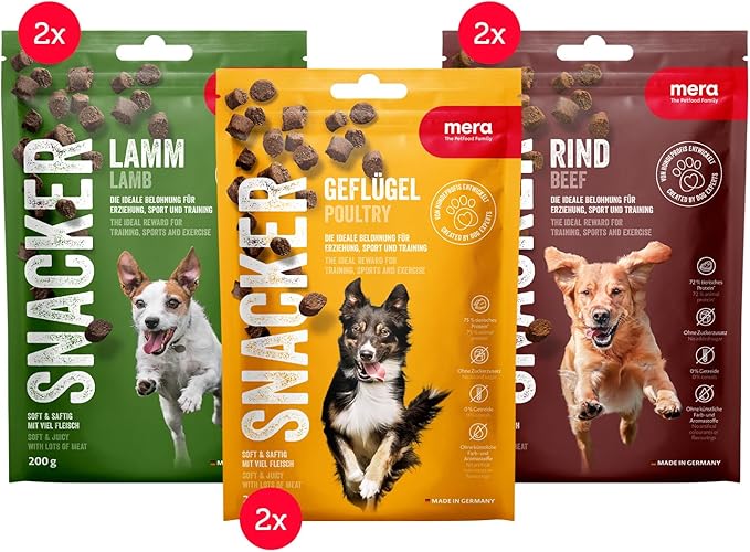 Мягкий/полувлажный перекус с высоким содержанием мяса. Без зерна, без добавления сахара, искусственных красителей и ароматизаторов. 3 разных вкуса. Результаты и радость от дрессировки вашей собаки благодаря теплому перекусу. › Подробнее о товаре