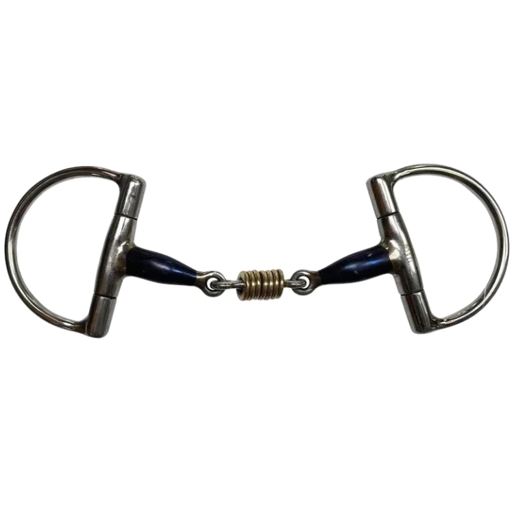 Двухшарнирный корпус делает этот мундштук более комфортным во рту, освобождая зону дискомфорта у неба, кроме того, кольца, расположенные на центральном шарнире, способствуют расслаблению лошади во время работы.