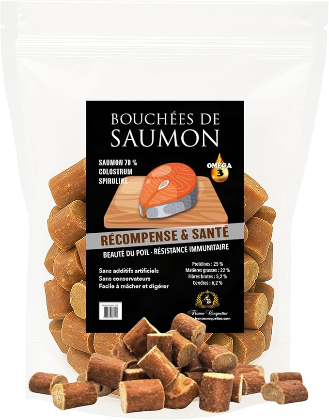 Описание продукта Кусочки лосося для собак 500 г Показания Лакомства для собак Ингредиенты 100% лосось Показания Всегда обеспечивайте питомцу доступ к воде Смотреть больше