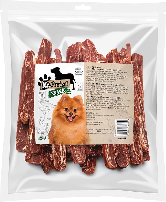 Натуральные ингредиенты: Изготовлено из высококачественной утки и рыбы, без искусственных добавок и консервантов. Соблазнительный вкус: Неотразимый вкус утки, богатый рыбой, который порадует даже самых привередливых собак. Здоровый и сбалансированный: Богато белком и с низким содержанием жира, идеально подходит для сбалансированного питания вашей собаки. Легко усваивается: Нежное филе легко усваивается и не раздражает желудок вашей собаки. Поддержка гигиены полости рта: Текстура стимулирует жевание и помогает очищать зубы, поддерживая здоровье полости рта вашей собаки. Подходит для собак с чувствительным желудком. Бережная обработка: Отбирается вручную и бережно обрабатывается для сохранения свежести и качества. Надежный бренд: От престижного бренда Mr. Pretzel, известного высококачественными лакомствами и перекусами для собак. Восторженные клиенты: Рекомендовано владельцами собак и любимо собаками, идеальная награда для вашего верного друга. Полное описание › Посмотреть больше сведений о товаре