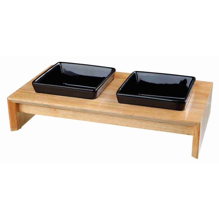 Этот набор мисок Trixie состоит из 2 керамических мисок с деревянной подставкой. Очень практично, это облегчит вашему питомцу переход от воды к еде, не проливая миски.