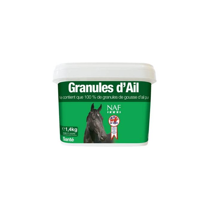 Naf Гранулированного Чеснока ? добавка для общего здоровья вашей лошади. Чеснок обладает virt?1, которые поддерживают активные защитные силы иммунной системы и обеспечивают чистоту крови. Чеснок ? также дезинфицирующее кишечника эффективно, кроме того, его запах имеет эффект репеллента против мух и насекомых.