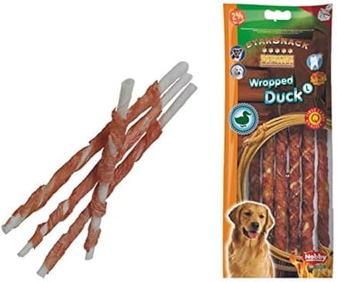 Лакомства для уток Starsnacks изготовлены из натуральных, полезных ингредиентов. Они сочетают в себе вкус утиного мяса с длительным удовольствием от жевания, которое дарит говяжья шкура. Они способствуют уходу за зубами вашей собаки, уменьшают стресс и образование зубного камня. Упаковка из 5 жевательных палочек для собак. › Подробнее о товаре