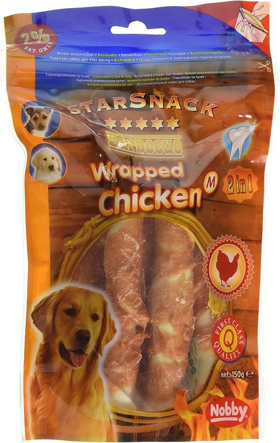 Об этом товаре. Лакомства Starsnacks Chicken Treats изготовлены из натуральных сырых ингредиентов. Практически не содержат жира, содержат мало калорий и богаты белком. Помогают в уходе за зубами вашей собаки, снижают стресс и образование зубного камня. Упаковка из 6 жевательных конфет для собак. › Подробнее о товаре