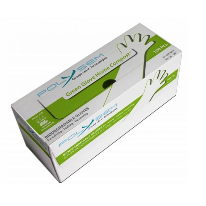 Перчатка для отела Greenglove, изготовленная из сырья сельскохозяйственного происхождения, является биоразлагаемой.