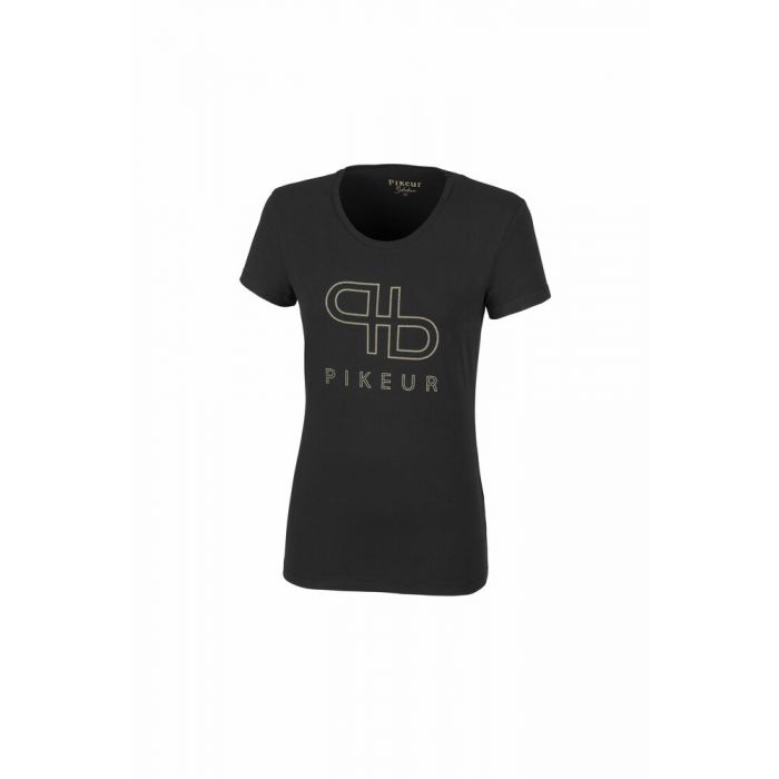 Рубашка с круглым вырезом из летней коллекции Pikeur. Рубашка имеет короткие рукава и принт Pikeur спереди.