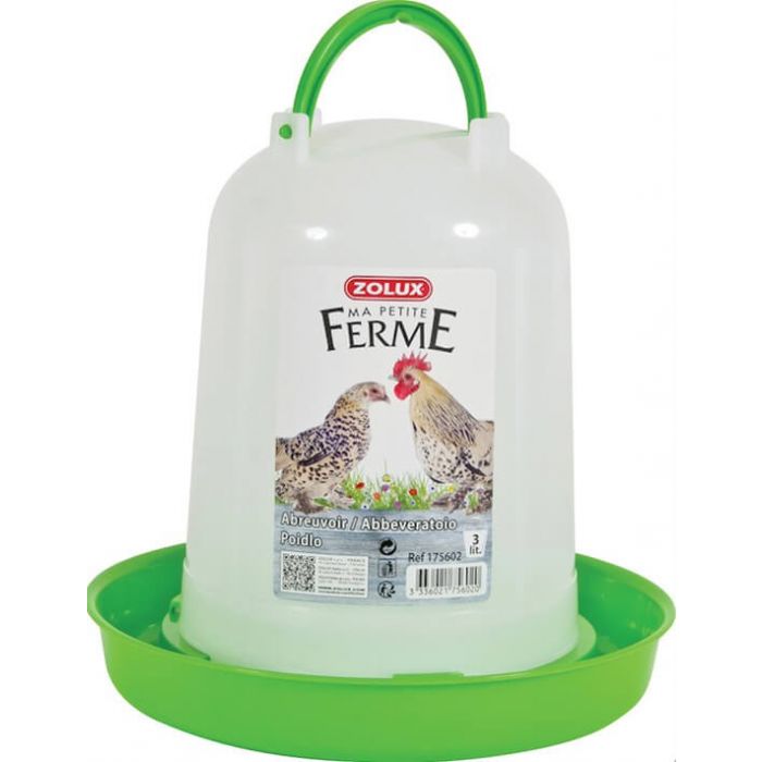 Поилка Zolux эстетична, практична и экономична! Идеально подходит для обустройства курятника в саду. Он подходит для 6 кур, и его очень легко заполнить снизу!